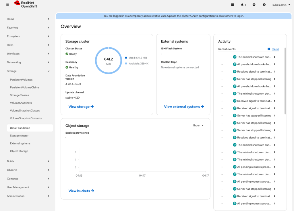 With ODF in place, your OpenShift cluster is no longer limited to stateless applications. You can confidently run databases, message queues, virtual machines, and other data-intensive workloads, knowing that your storage is scalable, self-healing, and built for enterprise use.